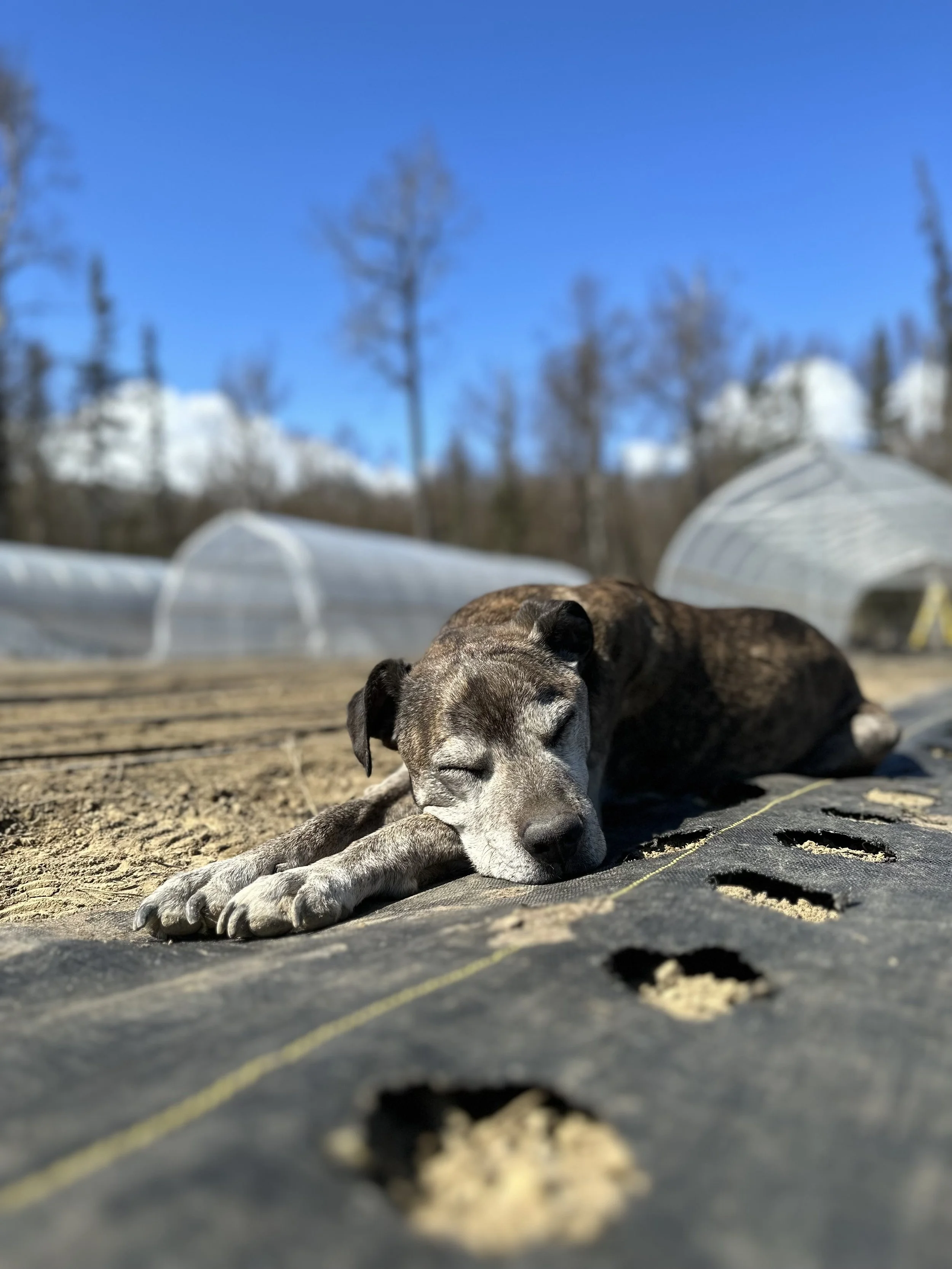 Ben has been farming for over 10 years, and met Mimi and Oliver back in 2010 on another local farm. Along with helping out at Brown Dog, he was the Farm Manager at Alaska Pacific University’s Spring Creek Farm in Palmer from 2019 until early 2024. You’ll see Ben at market on Saturdays, and he spends a lot of his time on the farm contributing to infrastructure projects like the fence, greenhouse, high tunnels, or walk-in cooler. His favorite flower is ranunculus.